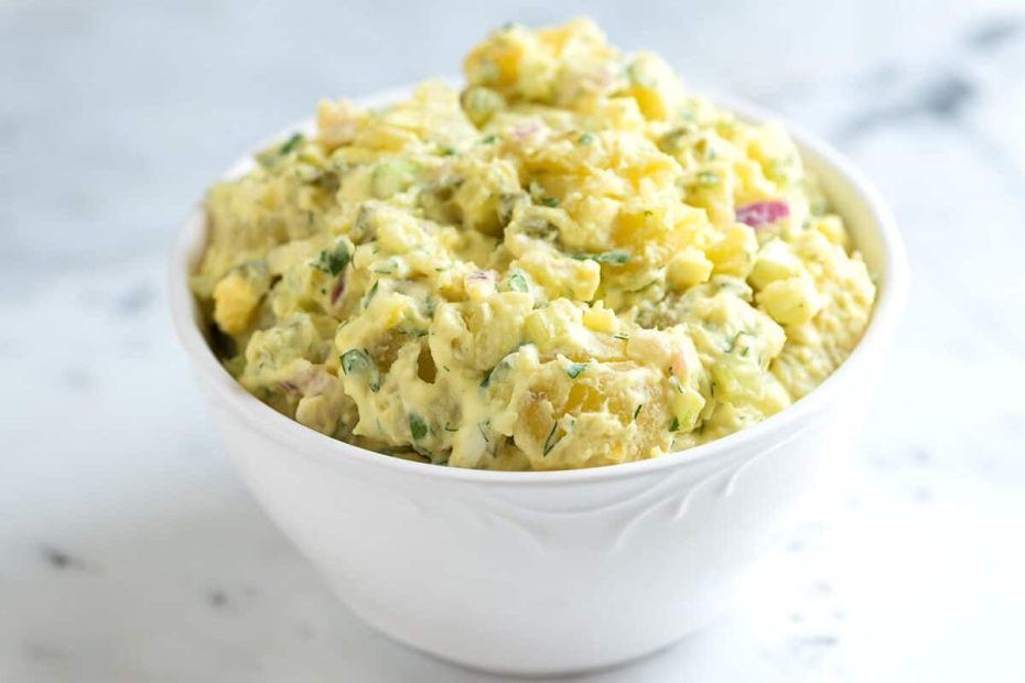 Es ist wichtig, die Kartoffeln und Eier in gleichmäßige kleine Würfel zu schneiden. Dadurch erhält der Salat eine schöne Struktur, in der jede Zutat einzeln wahrnehmbar ist und keine homogene Masse entsteht. Genau das unterscheidet ihn von Brotaufstrichen. Es ist auch wichtig, die Zutaten nach Zugabe der Mayonnaise vorsichtig zu vermengen, damit die Kartoffel- und Eierwürfel ihre Form behalten.
