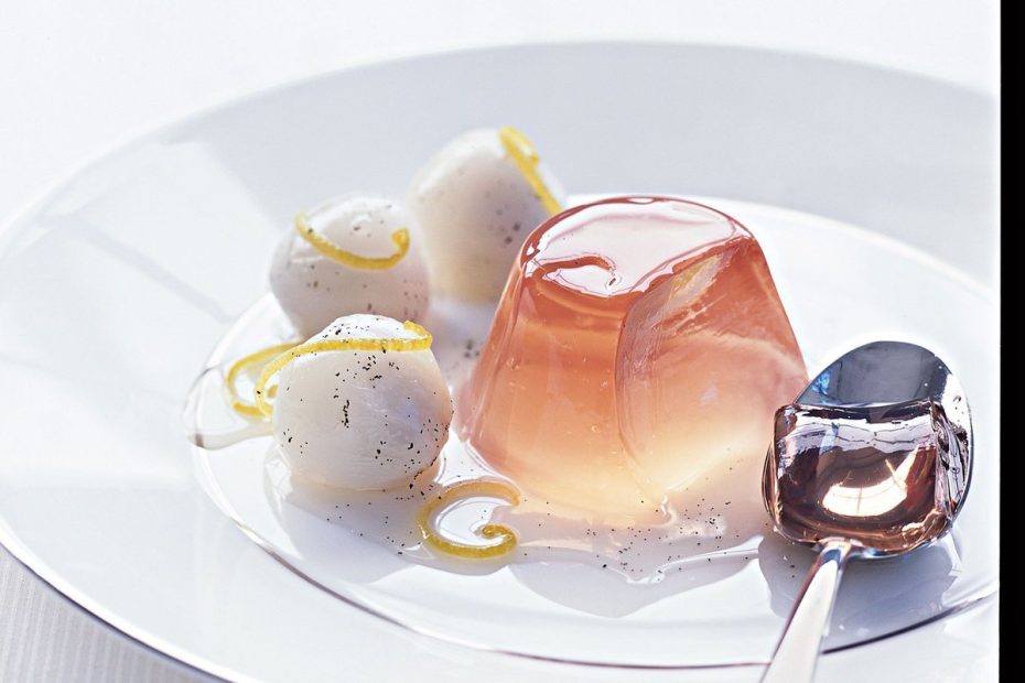 Gelatina de porc sau de vită este potrivită ca gel; dacă alegeți agar, rețineți că acesta se întărește diferit și necesită o fierbere scurtă. Adăugați o linguriță de suc de lămâie pentru prospețime și un praf de sare, care intensifică gustul și echilibrează dulceața.